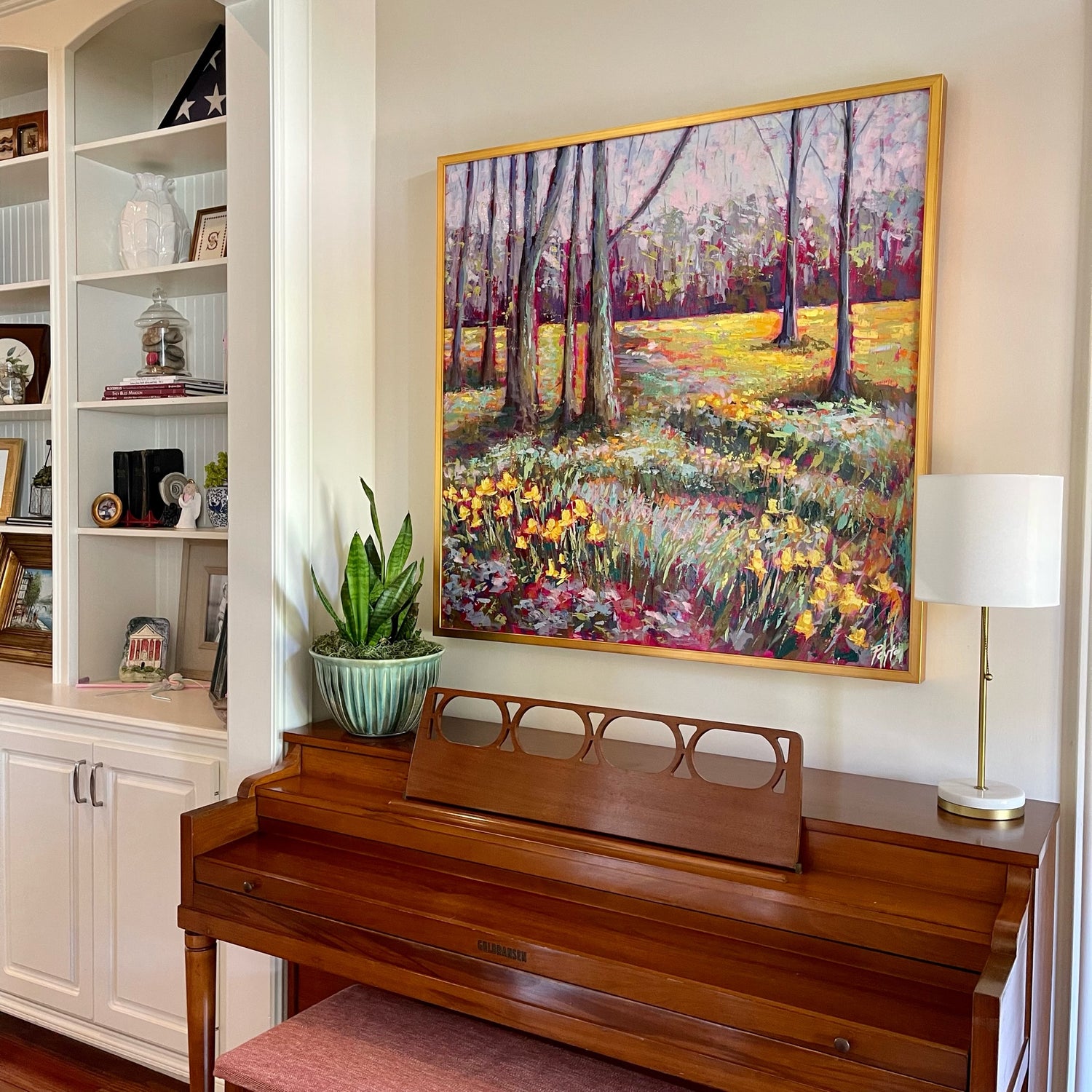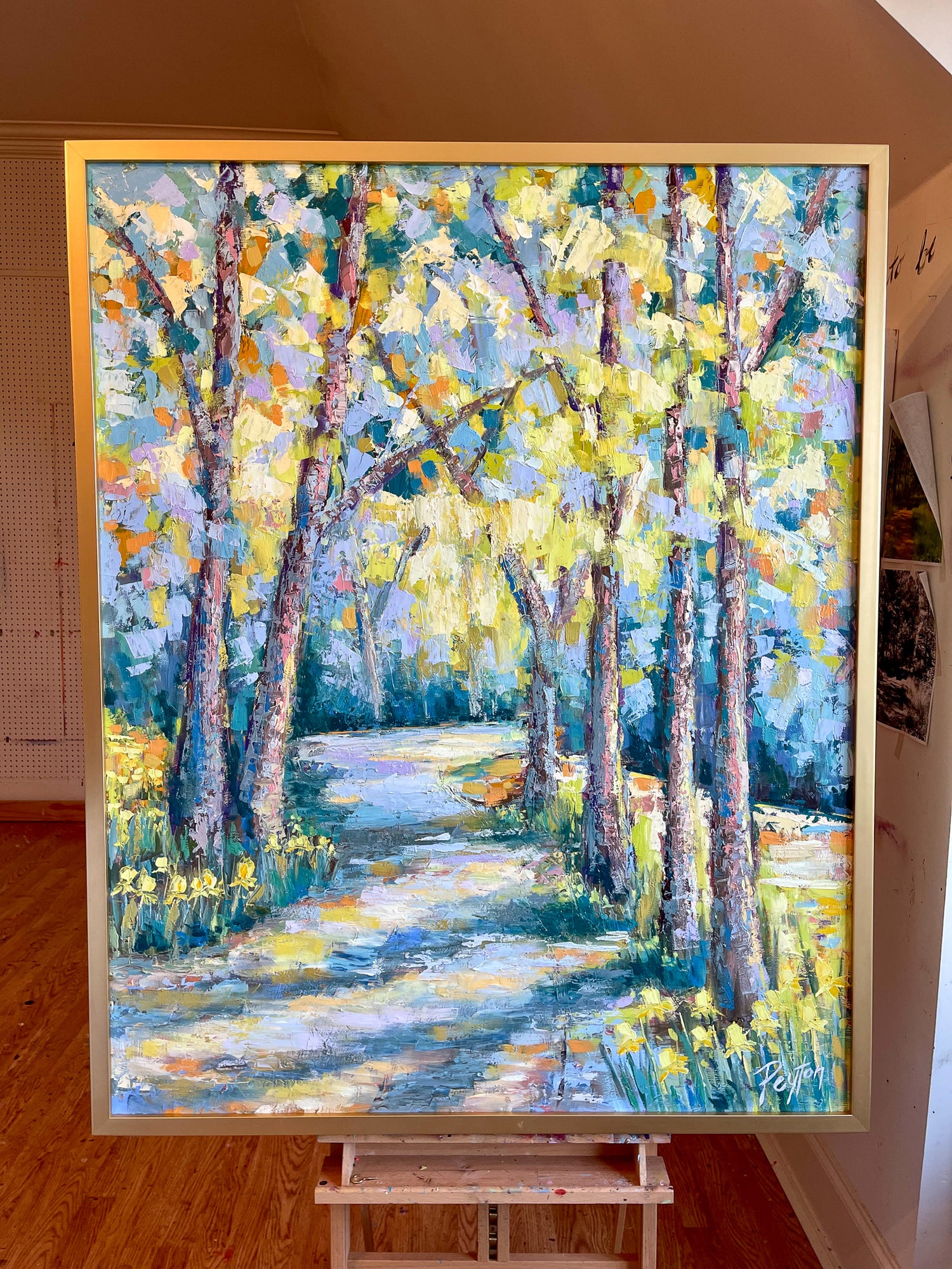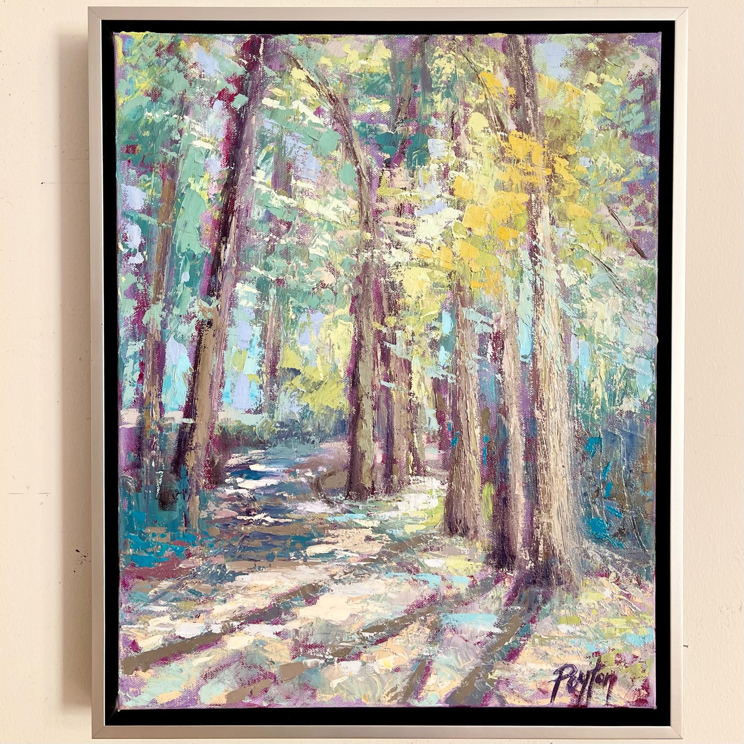 “I absolutely love this piece by Peyton. Not only are the colors bright and beautiful but the painting features an area of the walking trail which runs directly behind our house. My family and I have spent countless hours making memories on this trail. This painting is very special to us as it captures God’s beauty in nature and reminds us of his family presence in our lives.”