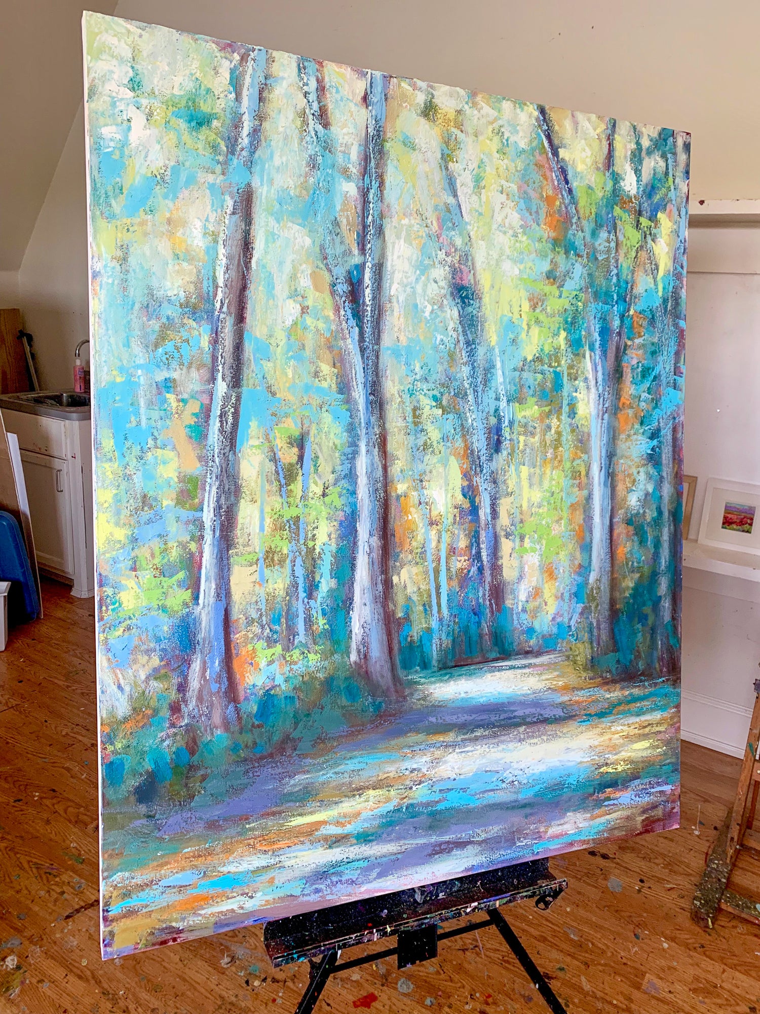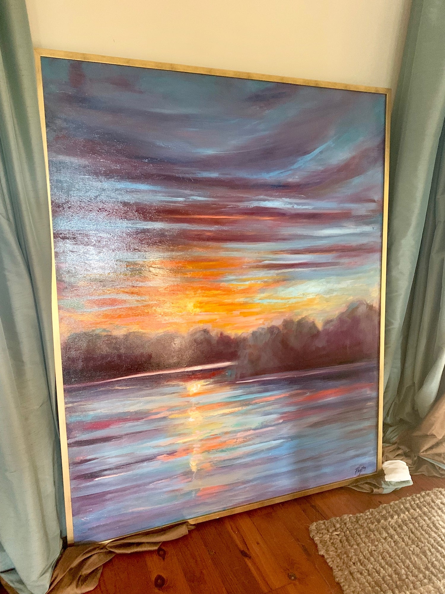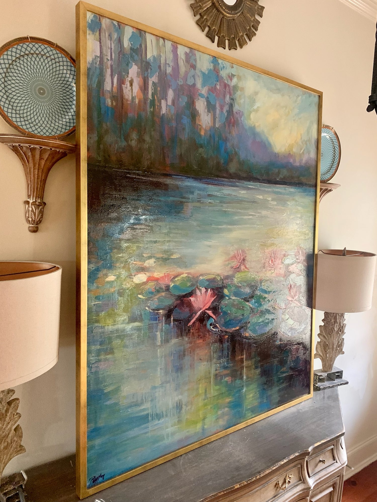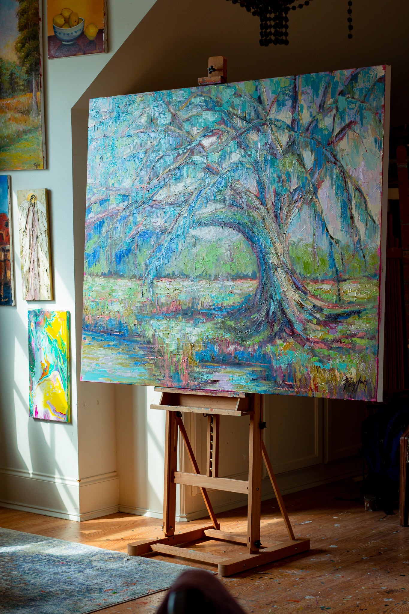 “I absolutely love this piece by Peyton. Not only are the colors bright and beautiful but the painting features an area of the walking trail which runs directly behind our house. My family and I have spent countless hours making memories on this trail. This painting is very special to us as it captures God’s beauty in nature and reminds us of his family presence in our lives.”