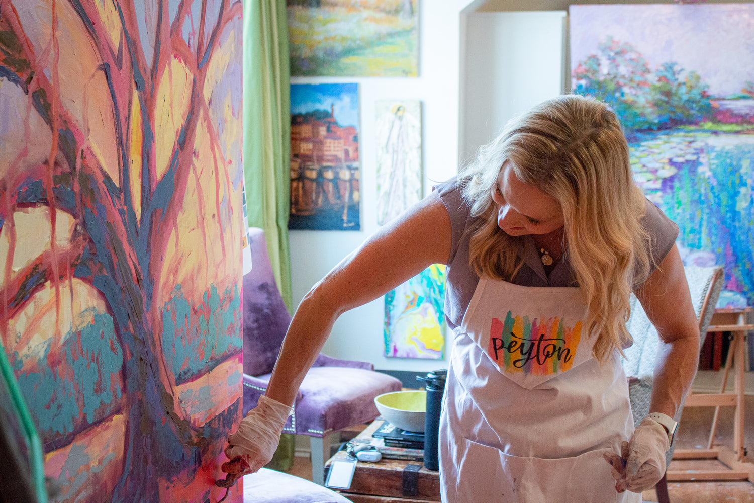 "Peyton is an amazing artist and truly makes my job as a designer so fun! Commissions can be tricky when working with clients who have a specific idea in mind. However, Peyton always goes above and beyond to capture the vision my clients and I have for their home. Incorporating her work into my designs adds a colorful focal point for my clients as well as a timeless piece they’ll enjoy for years to come."